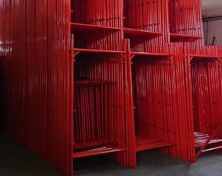 Щоб уникнути деформації великих металевих вузлів будівельних риштувань, таких як рами та настили, їх слід штабелювати та зберігати в горизонтальному положенні.