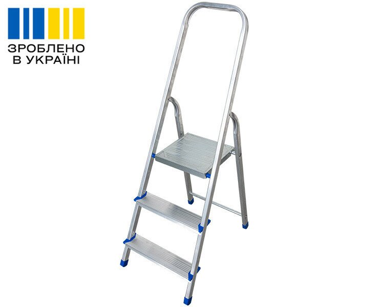 Алюмінієва одностороння стрем'янка 3 сходинки VIRASTAR NOVA - висота 1,15 м, ширина 40 см, вага 2,8 кг.