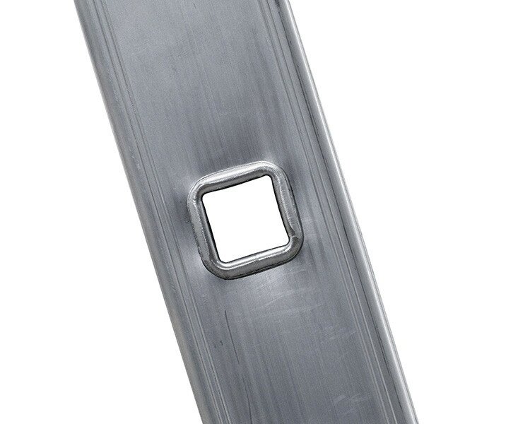 - алюмінієві гаки фіксують драбину в складеному положенні, коли її транспортують або зберігають;