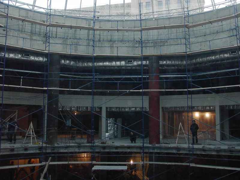 Клинове з'єднання дозволяє монтувати риштування практично під будь-який фасад та конфігурацію будівлі – навіть там, де багато виступів, ніш, арок, колон. У рамних риштуваннях геометрія фіксована: крок рам та висота пов'язані жорстко, тому їх не можна "підігнати" під складний об'єкт.