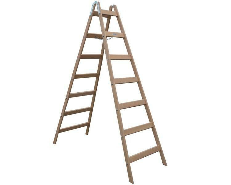 Дерев'яна двостороння драбина-ходуля VIRASTAR STEPPER 2x7 сходинок виготовляється в Україні і підходить для використання в різних галузях (електромонтаж, ремонт, садові та будівельні роботи):