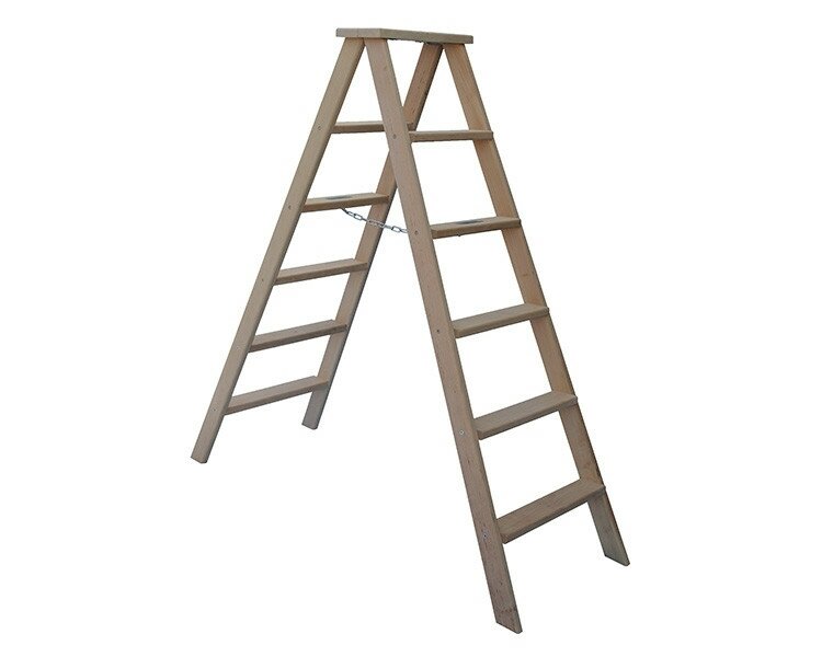 Дерев'яна двостороння драбина-стрем'янка VIRASTAR HOBBY 2x6 сходинок (виробництво Україна) призначена для використання при виконанні електромонтажних, ремонтних, садових і будівельних робіт: