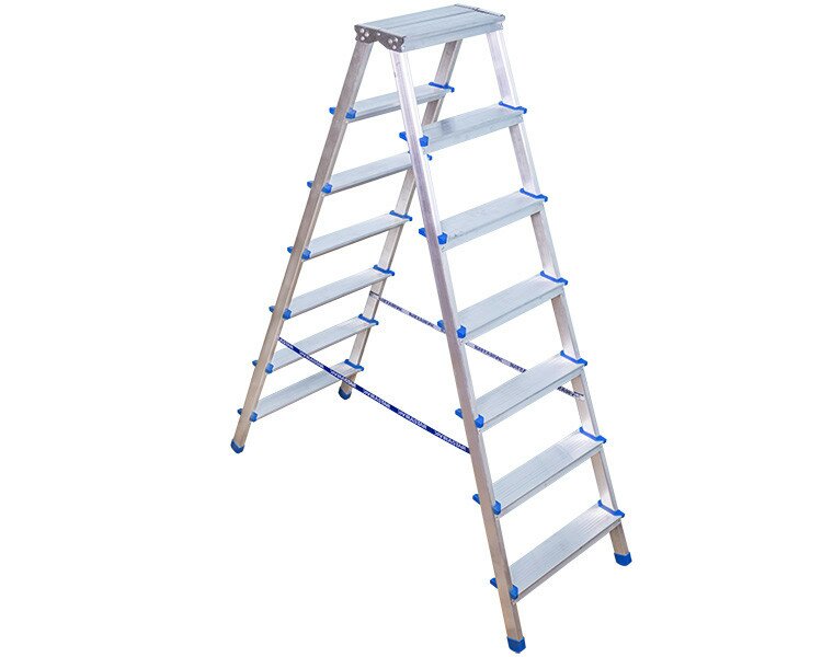 - двостороння алюмінієва стрем’янка VIRASTAR GORA 2х7 сходинок підходить для використання на роботі та вдома;