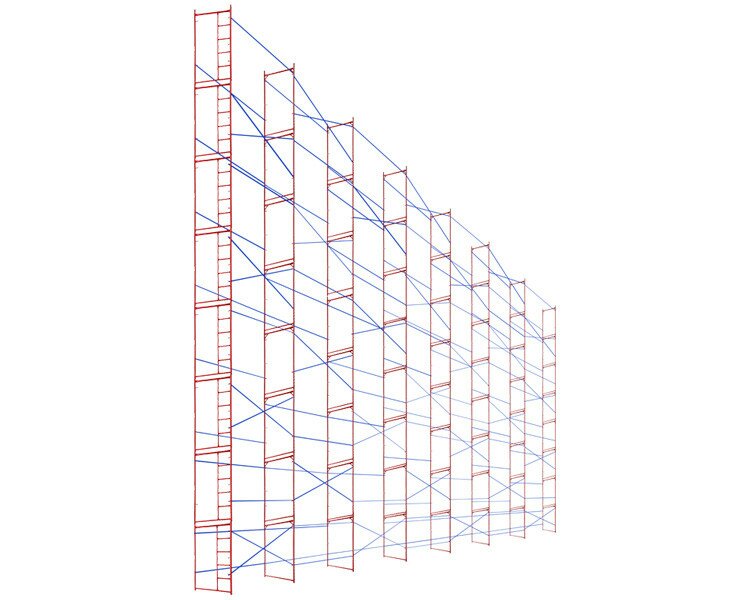 Комплект рамных лесов 16х21 (М) VIRASTAR площадью 336 кв.м. Материал - стальная труба, поверхность окрашена порошковой краской.