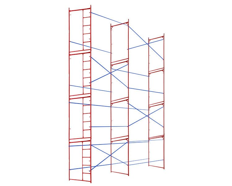 Комплект рамных лесов 8х6 (М) VIRASTAR площадью 48 кв.м. Материал - стальная труба, поверхность окрашена порошковой краской.